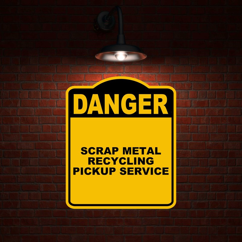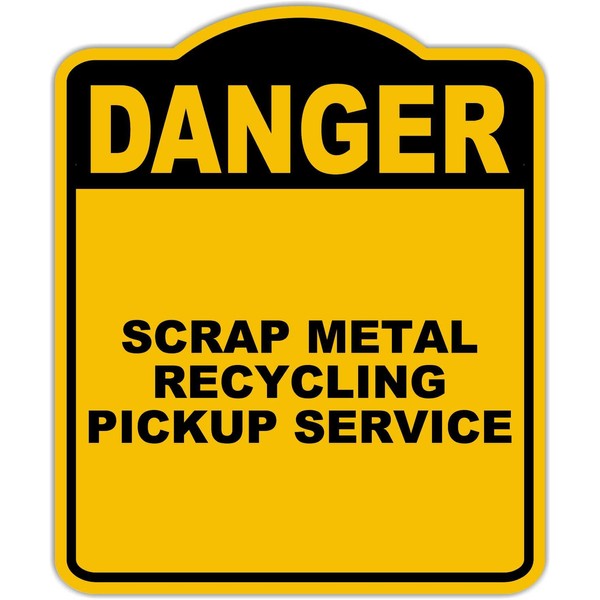 SCRAP METAL RECYCLING PICKUP SERVICE Danger Yellow Black Aluminum Composite Sign 8.5 x 10 inches