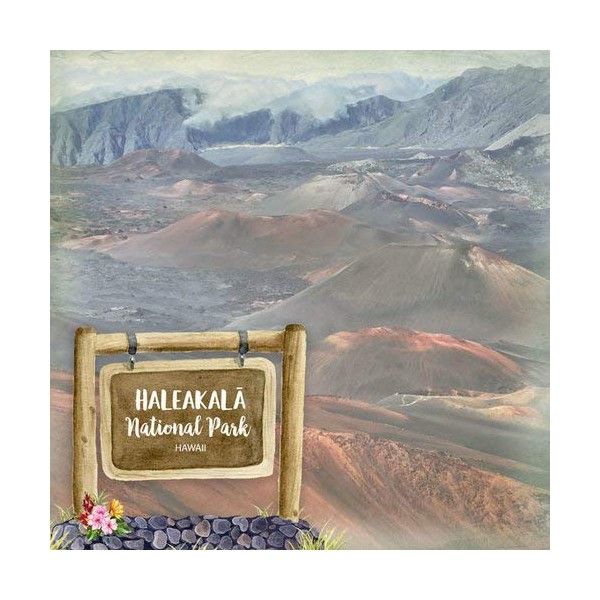 Scrapbook Customs 39096 Haleakala National Park Watercolor Hawaii 12 Inch x 12 Inch Double-Sided Scrapbook Paper - 1 Sheet