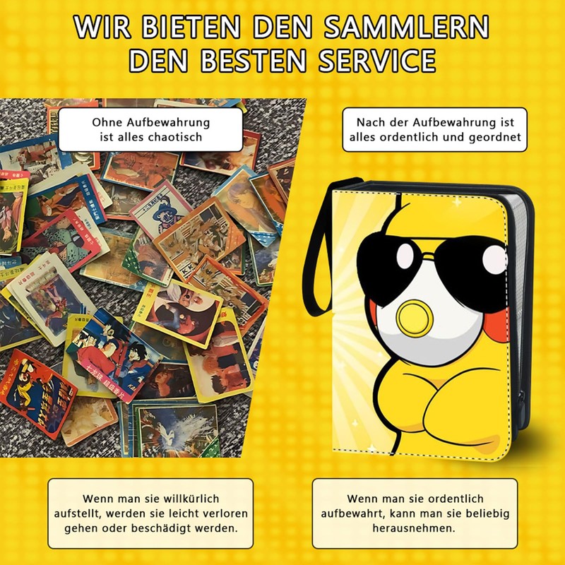 - 440 card capacity + organiser professional: Say goodbye to chaos. Our 55-page scrapbook with 4-pocket design holds 440 trading cards - ideal for Pokém, Yu-Gi-Oh! or sports cards. The clear, waterproof sleeves protect against moisture and scratches, while the double-sided scrolling makes your cards look like a professional archive! (Cards not included)