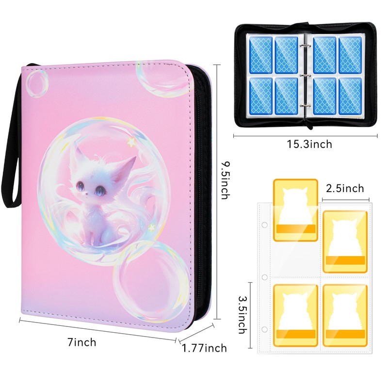Scrapbook for Cards, Trading Cards Album, 50 Pages, 400 Card Capacity, Trainer Trading Card Albums, Scrapbook Books for Cards with Zip, Card Folder Book, Pink