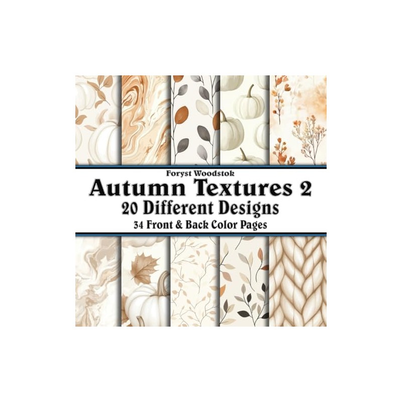 Scrapbook Paper - 34 Front and Back Full Color Sheets: Autumn Textures 2 Neutral Fall Colors and Pumpkins - 8.5"x8.5"