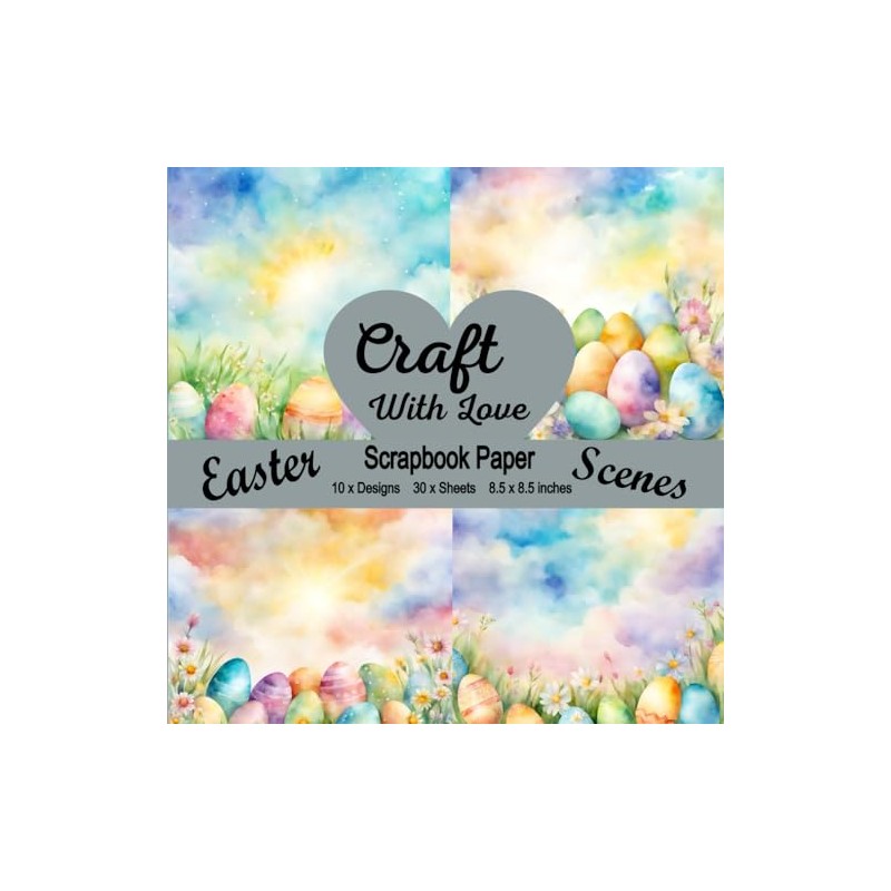 Scrapbook Paper Pad - Easter Egg Background Scenes - Craft With Love - 10 x designs, 30 x sheets - 60 x pages, large 8.5 x 8.5 inches.: Watercolor ... Junk Journals, Collage, Paper Ephemera