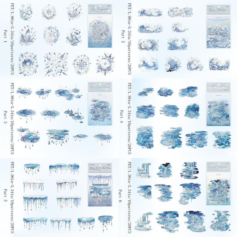 - Sticker Design:These nature stickers feature the ephemeral beauty of ripples, ice crystals, water droplets, clouds and rain in motion, capturing water's fluidity as timeless art.Each kit contains 6 packs with 120 pieces in total