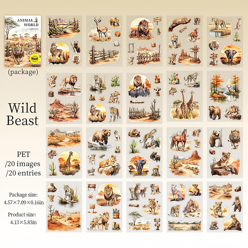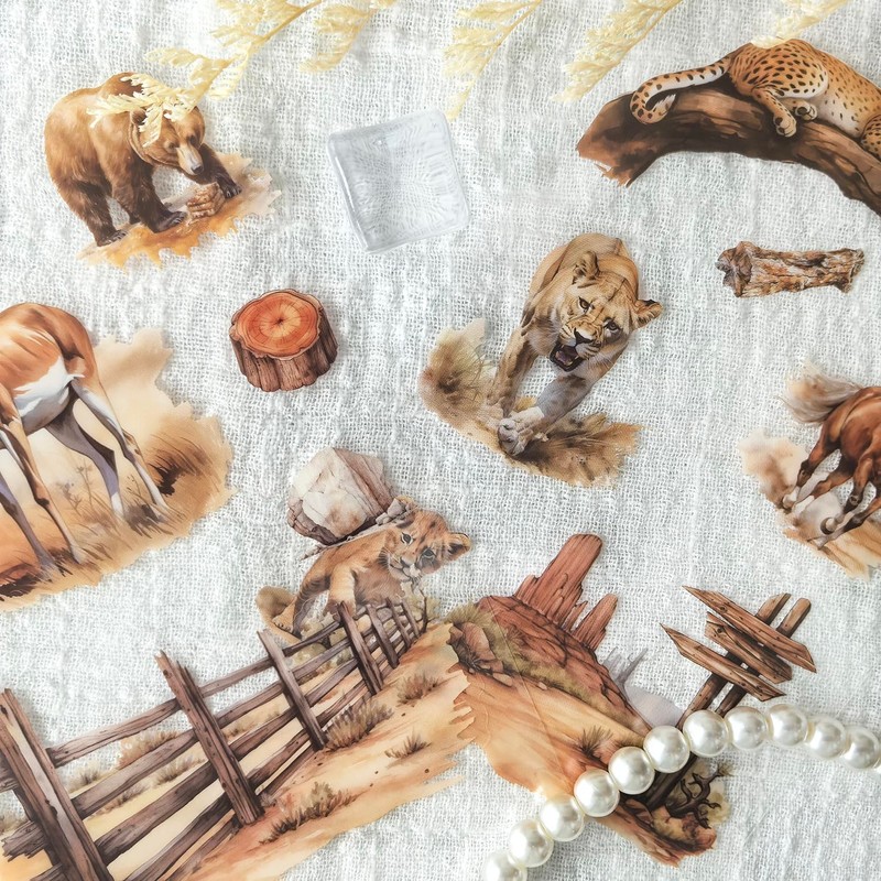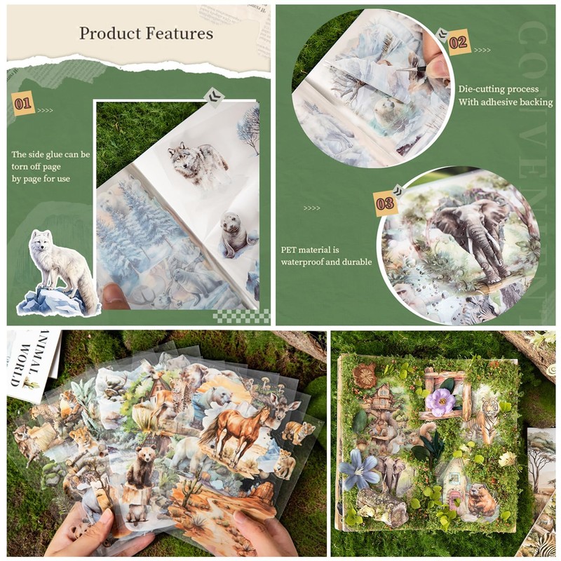 - Scrapbook sticker book set 3: This enchanting scrapbook sticker set has an animal motif and contains majestic lions, elegant leopards, powerful tigers and cosy bears. Ideal for creative projects, scrapbooking or gift decoration.