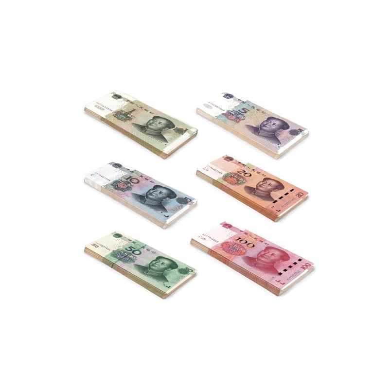 - Each pack contains 150 banknotes, 6 bundles of 25 x 1, 5, 10, 20, 50 and 100 yuan