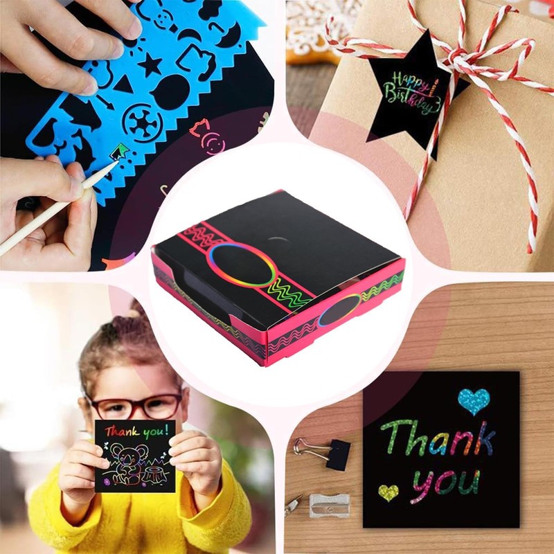 - Great Material: Enjoy more creativity as this scratch paper is made of high-quality materials that will keep your projects looking well-maintained for a long time. Safe for kids and difficult to tear, it's the ideal choice for any art-loving family.