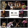 Scratch & Sketch Art Paper A4 for Kids & Adults, Rainbow Painting Night View Art&Craft, Engraving Art Set: 8 Sheets Scratch Cards & Scratch Drawing Pen, Clean Brush (Beast/Animal)