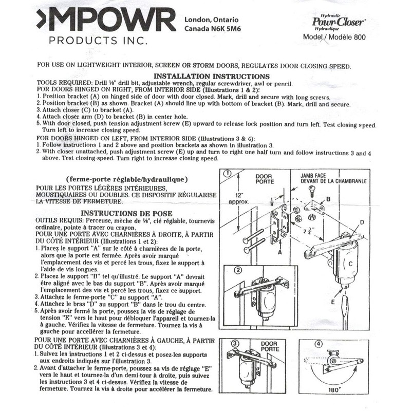Screen and Storm Door Rotary Hydraulic Closer | MPOWR Hydraulic POWR-Closer 800