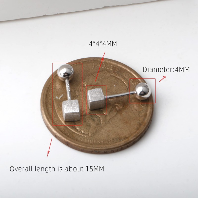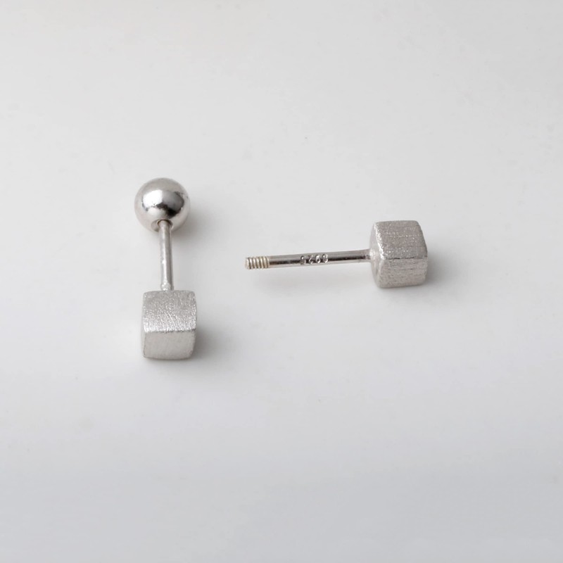 - Very small earring studs, the cube is 4mm appr and matt finish, with screw back