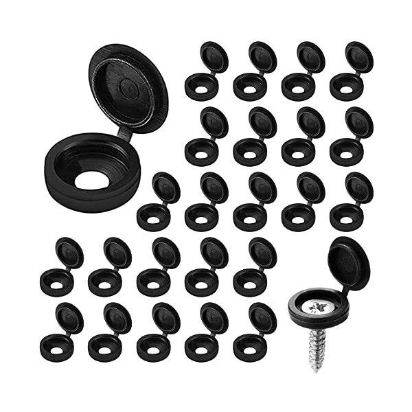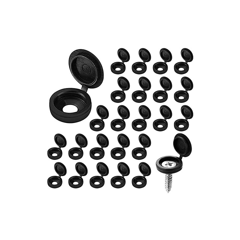 Screw Covers 100pcs Black Plastic Screw Cap Hinged Fold Over Caps Rubber Dust Washer Flip Tops for M4-M8 Screw