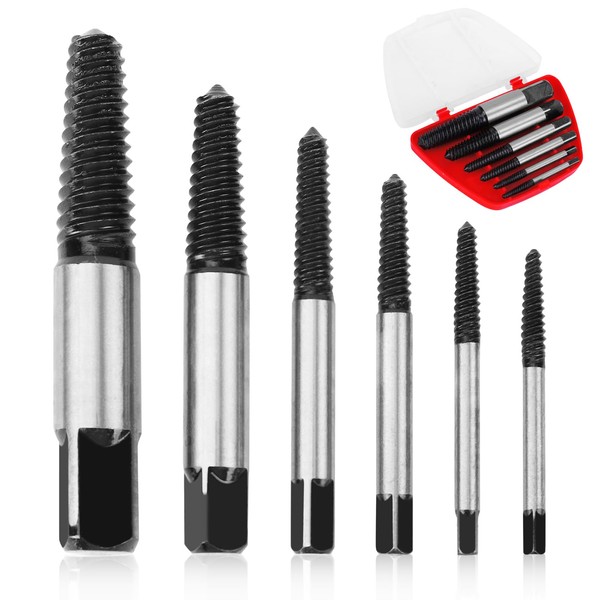 Screw Extractors 6PCS with Box, Damaged Screw Bolt Extractor Set, Easy Out Bolt Extractor Set, Screw Stripped Stud Remover Tool, Broken Bolts Stripped Extraction Tool for 1/8 to 1 Inch Thread Nut