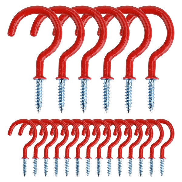 Screw Hooks Cup Hooks Screws Vinyl Coated Multi-Purpose Hooks 2 Inch Eye Hooks Ceiling Hooks for Cups, Wind Chimes, Lanterns and More, Pack of 20 (Red)