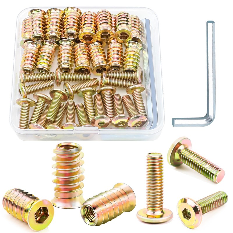 Screw-in Nut M6 x 20 Screw Sleeves with Flat Head Screws Threaded Insert Wood Threaded Bushing Nuts Made of Steel