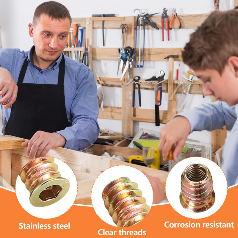 - Easy to use: the unique external thread of the wooden thread insert is clear and clean, which makes installation and tightening easier. Simply drill a hole of the right size and install it with an Allen key.