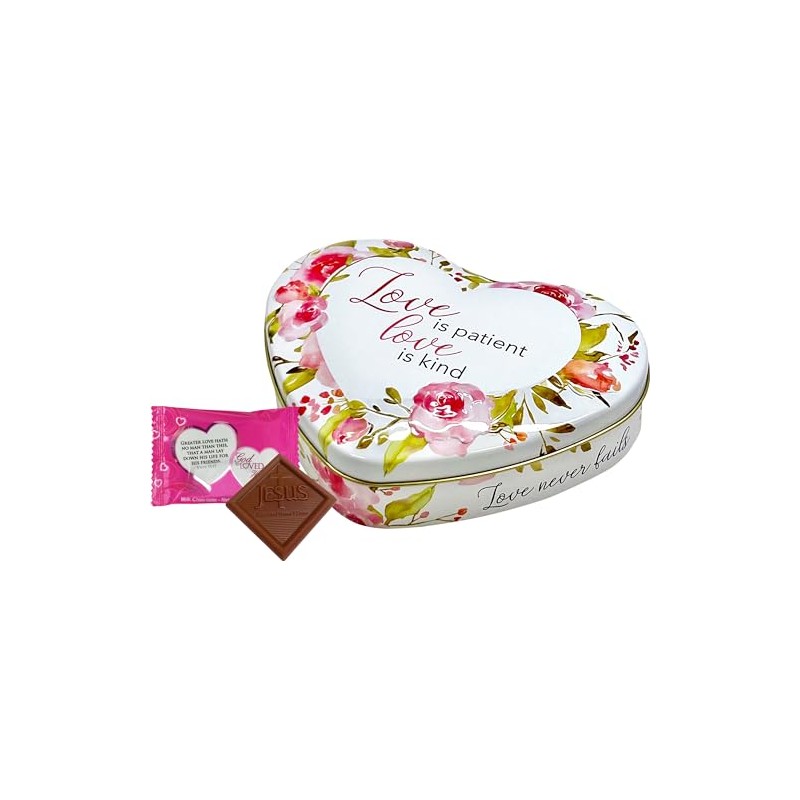 Scripture Candy, Love is Patient, Love is Kind Heart Tin with Milk Chocolate,...