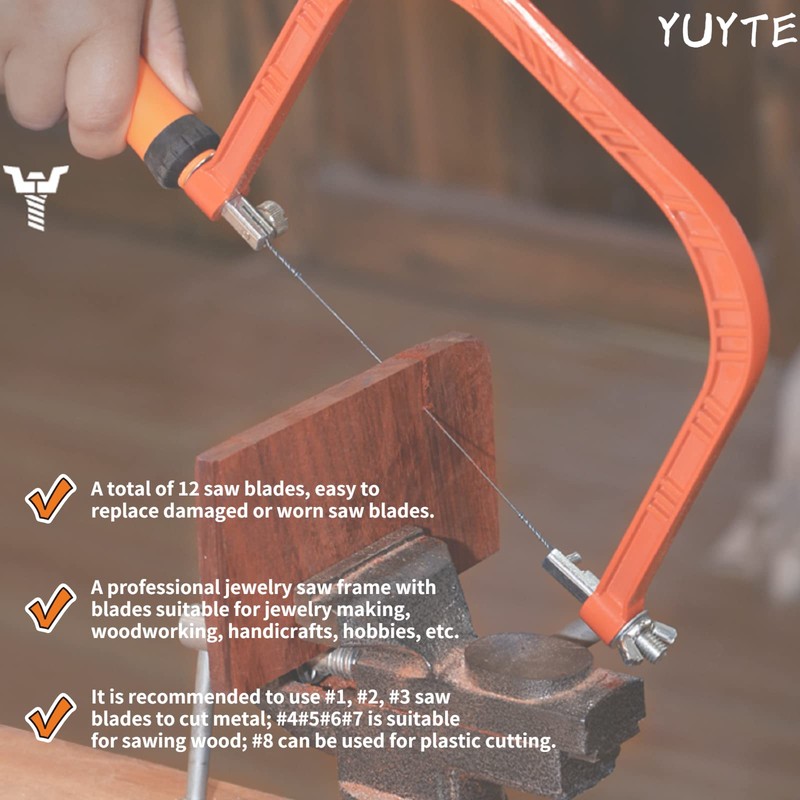 The thicker the item you want to cut, the thinner the saw blade should be. It is recommended to use the saw blade #1, #2, #3 to saw the metal. # 4 # 5 # 6 # 7 is suitable for sawing wood; #8 can be used when sawing plastic. The sharp tooth is resistant to strain and improves cutting speed. Made of fine carbon steel forged with high hardness and strength. This package is a total of 12 pieces saw blade, convenient to replace the broken or worn one. Sawing the curve is very relaxed, the blade does not get stuck.
