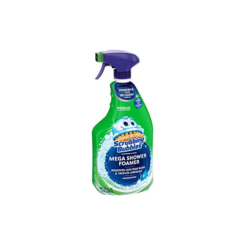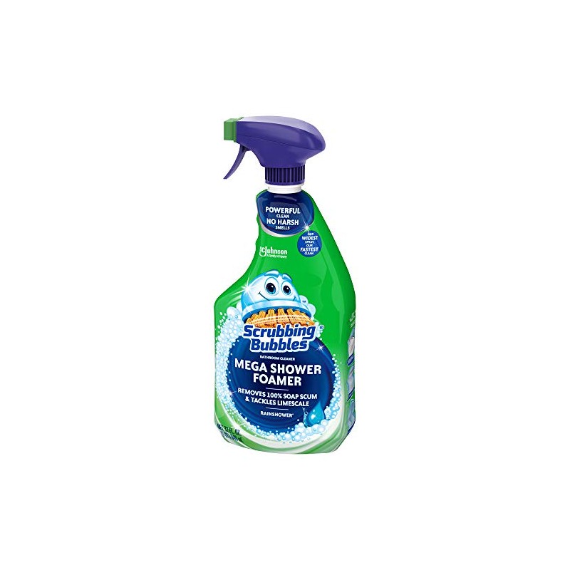 Scrubbing Bubbles Mega Shower Foamer Spray is a foaming, grime-busting formula that removes 100% of soap scum, tackles limescale and smells amazing. With its adjustable, wide spray nozzle, it quickly covers tubs, tile, shower walls, vinyl shower curtains and shower doors for a powerful clean. Say so long to surface scum, and hello to sparkling clean and the fresh scent of Rainshower. In between your deeper cleans with Mega Shower Foamer, use Scrubbing Bubbles Daily Shower Cleaner to prevent the build-up of limescale, soap scum and grime, keeping those same surfaces looking fresh. They go great together -- a fresh dream team.