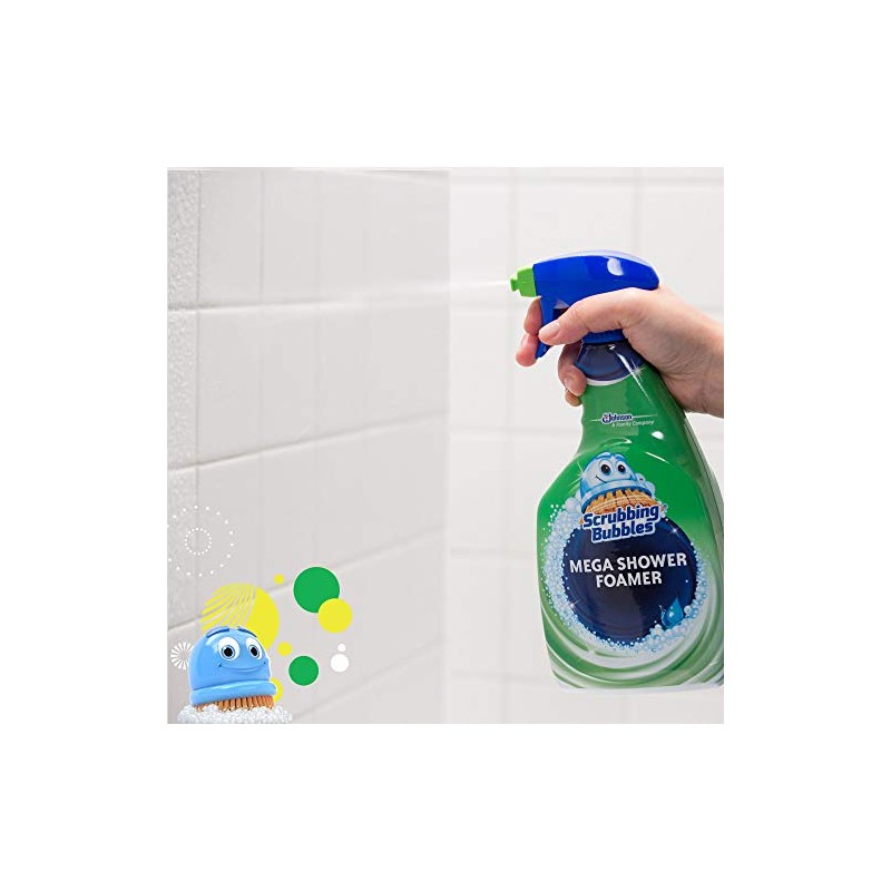 Scrubbing Bubbles Mega Shower Foamer Spray is a foaming, grime-busting formula that removes 100% of soap scum, tackles limescale and smells amazing. With its adjustable, wide spray nozzle, it quickly covers tubs, tile, shower walls, vinyl shower curtains and shower doors for a powerful clean. Say so long to surface scum, and hello to sparkling clean and the fresh scent of Rainshower. In between your deeper cleans with Mega Shower Foamer, use Scrubbing Bubbles Daily Shower Cleaner to prevent the build-up of limescale, soap scum and grime, keeping those same surfaces looking fresh. They go great together -- a fresh dream team.