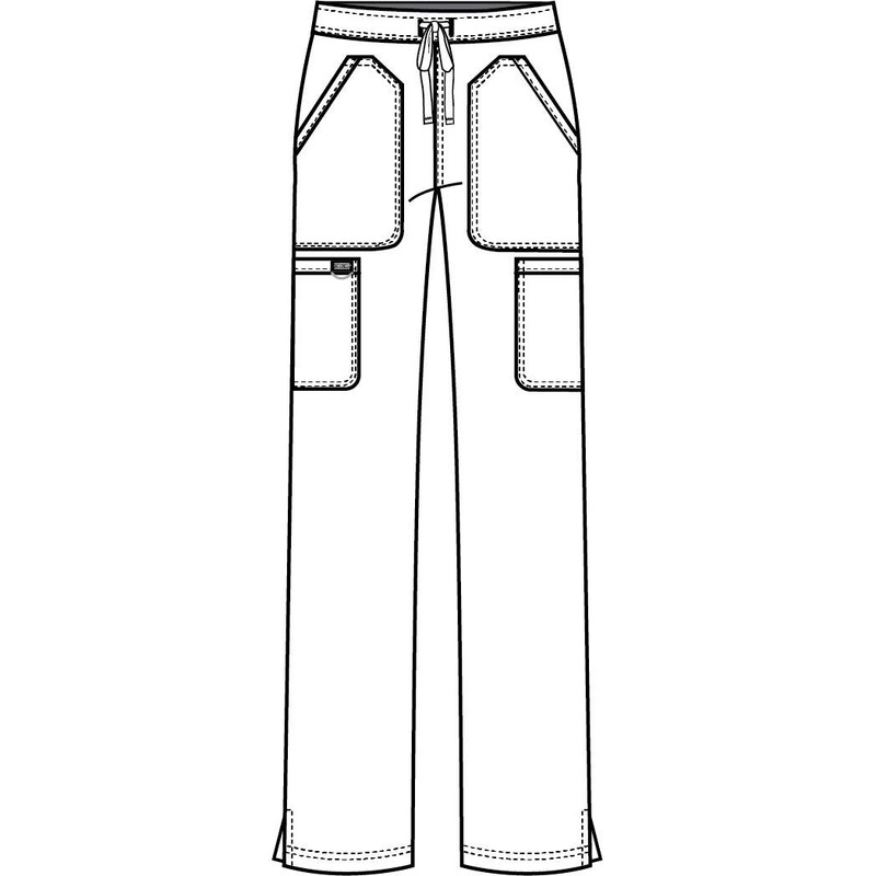 - FIVE POCKETS, BADGE LOOP - These nurse scrubs for women feature two roomy front pockets to store all your work gear, two cargo pockets, and a back pocket. Bungee ID badge loop on right cargo pocket for additional storage. Pockets on these scrub bottoms are large enough for iPhones and Galaxy phones.