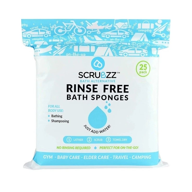 Scrubzz Disposable No Rinse Bathing Wipes - 25 Pack - All-In-1 Single Use Shower