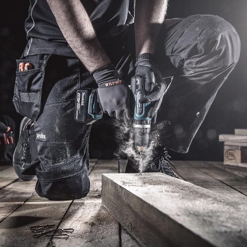 DescriptionDurable twill cotton work trousers with built-in stretch for comfort and flexibility. Slim fit with comfort gusset for freedom of movement. Abrasion-resistant, top-loading Cordura? knee pockets for enhanced durability. Features holster, cargo, rule, mobile phone, and secure, zipped pockets. Ha mmer loop, tool loops and D ring for tool and accessory storage. Hard wearing canvas fabric hem and pocket reinforcements for enhanced durability. Triple-stitched seams. 81 percent polyester 19 percent cotton, 250gsm.