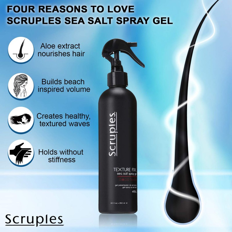 Scruples Texture Fix Sea Salt Spray Gel (8.5 fl. oz. / 250 ml) – Hair Volumizing Spray with Aloe – Builds Volume & Moisturizes Hair - Texturizing Spray for Fine & Thin Hair (Pack of 1)