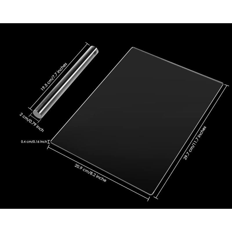 - Size (L x W): Acrylic Roller: 19.5 cm x 2 cm/7.68 inches x 0.79 inches; Acrylic Board Sheet: 29.7 cm x 20.9 cm x 0.4 cm/11.9 inches x 8.23 inches x 0.16 inch (A4 paper size)