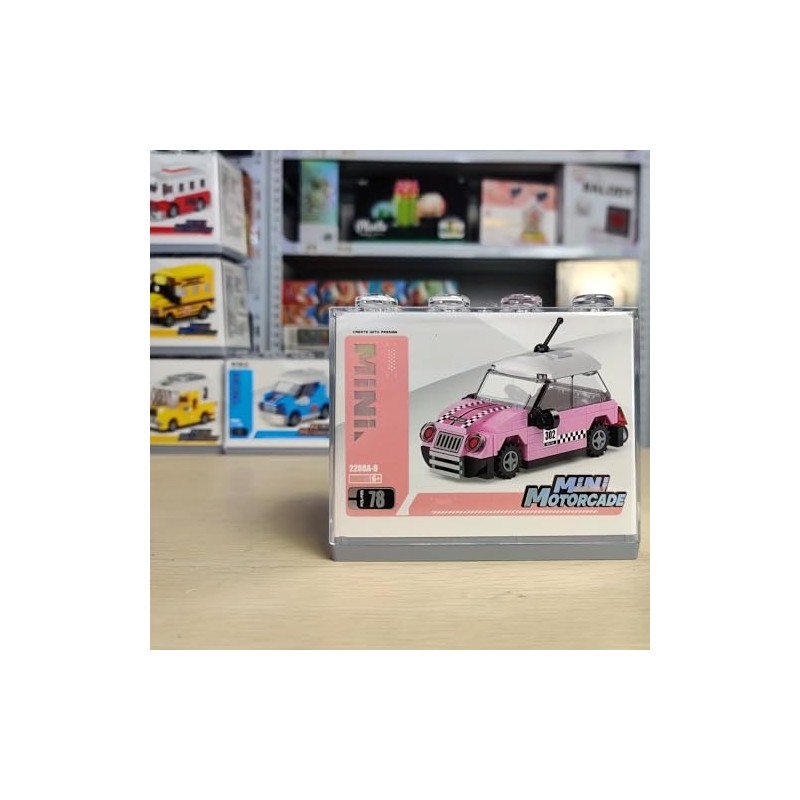 SCTCACR Cartoon car Model Assembly Building Blocks with Acrylic PVC Display Box for Boys Girls, Children's Puzzle Kids Toys Gifts Decorative Decorations (Pink Racing Car-8(78pcs))