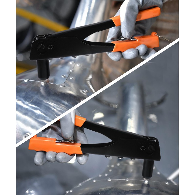 - [Product Function]: The manual riveter can be used to drill suitable holes on the two materials that need to be riveted, and put the rivets in according to the diameter specifications of the rivets. It is very convenient to use.