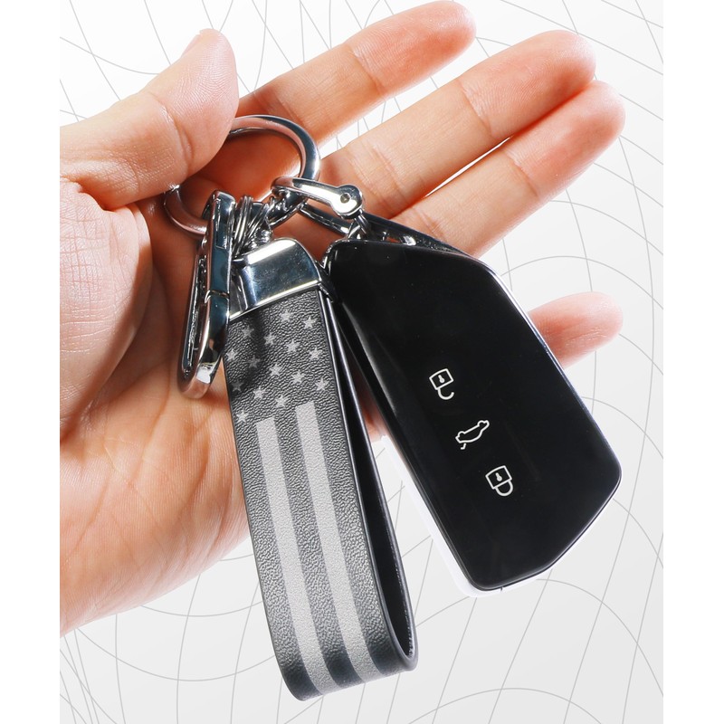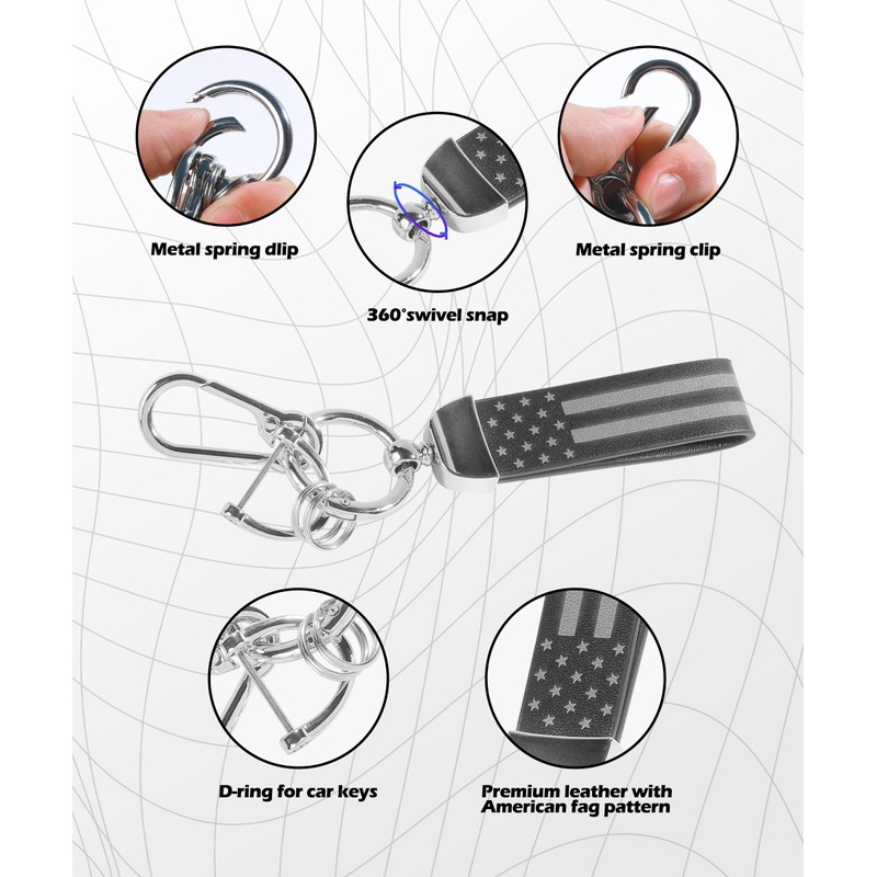 SCUARI Car Key Chain,Car Accessories American Usa Flag Key Chains with Anti-Lost D-Ring,Cool Keychains,Fit for Most Cars (Silver)