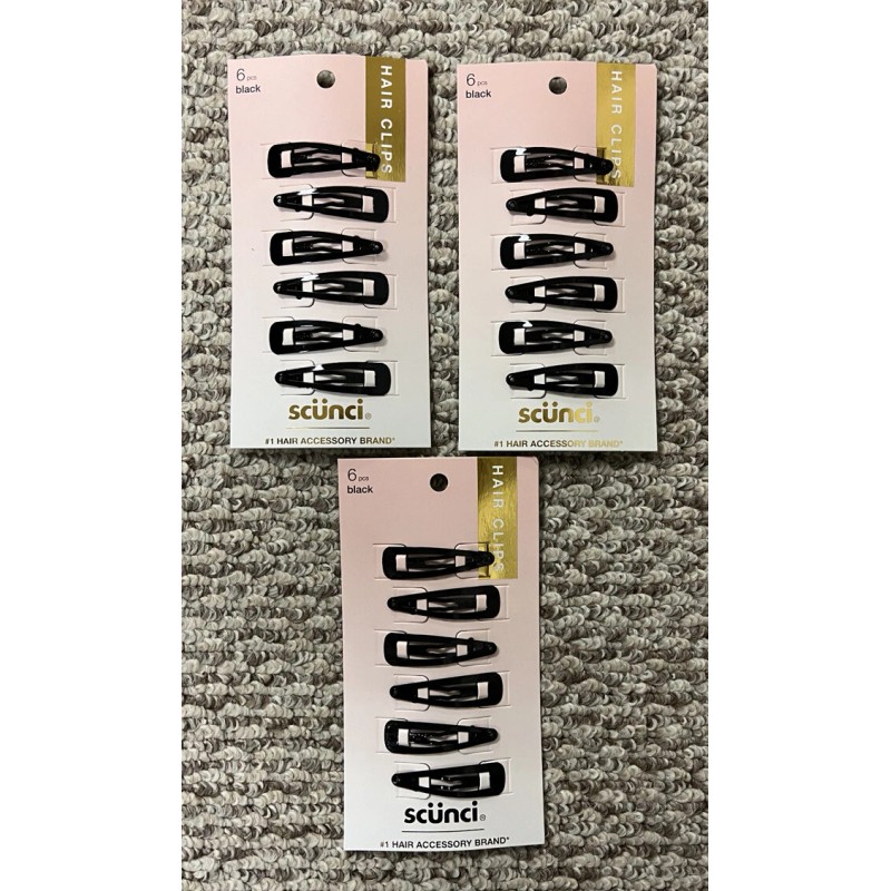 scunci 3 Black Scunci Snap Hair Clips 6 Each.