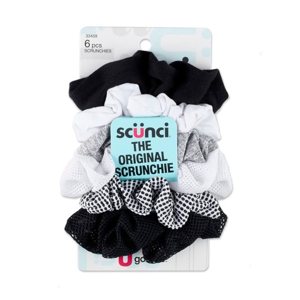 scunci, 6 pcs scrunchies, Black, Gray, White, 33459