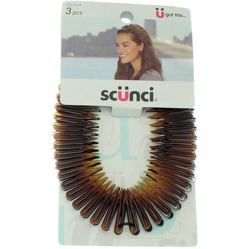 Scunci Effortless Beauty Stretch Hair Combs Tortoise, Opaque White, and Black (3-Count)