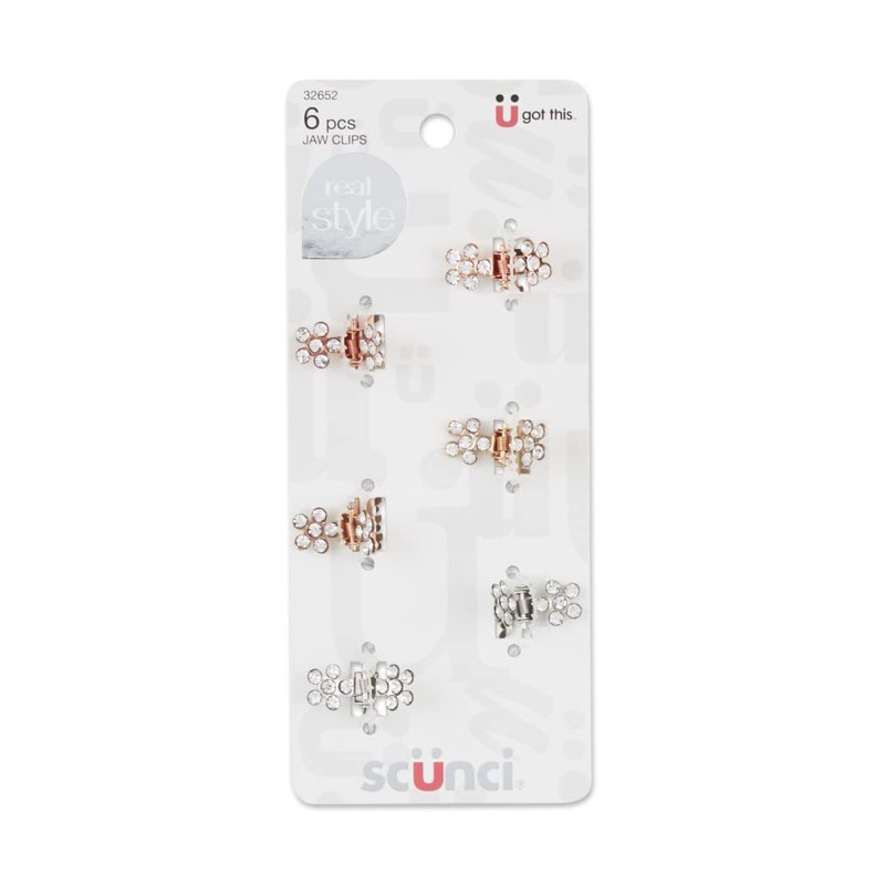 Scunci Micro Mini Metal Rhinestone Jaw Clips, Assorted, 6 Count