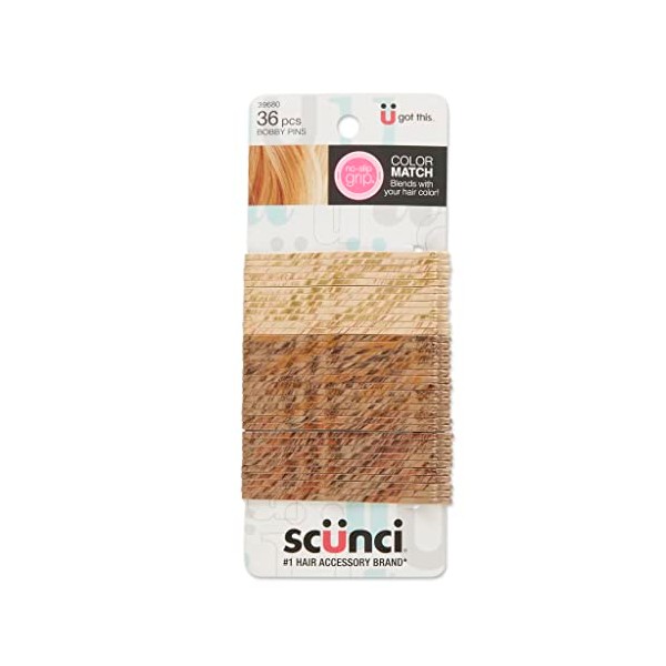 Scunci No-Slip Grip Color Match Curve unisex Bobby Pins 2.75", Blonde, 36 Count