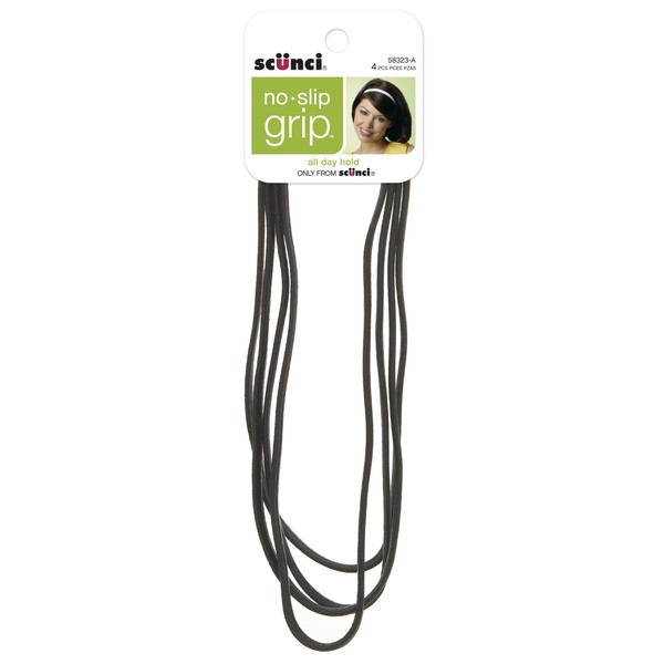 Scunci No-slip Grip Flat Black Headwraps, 9mm, (Pack of 4)
