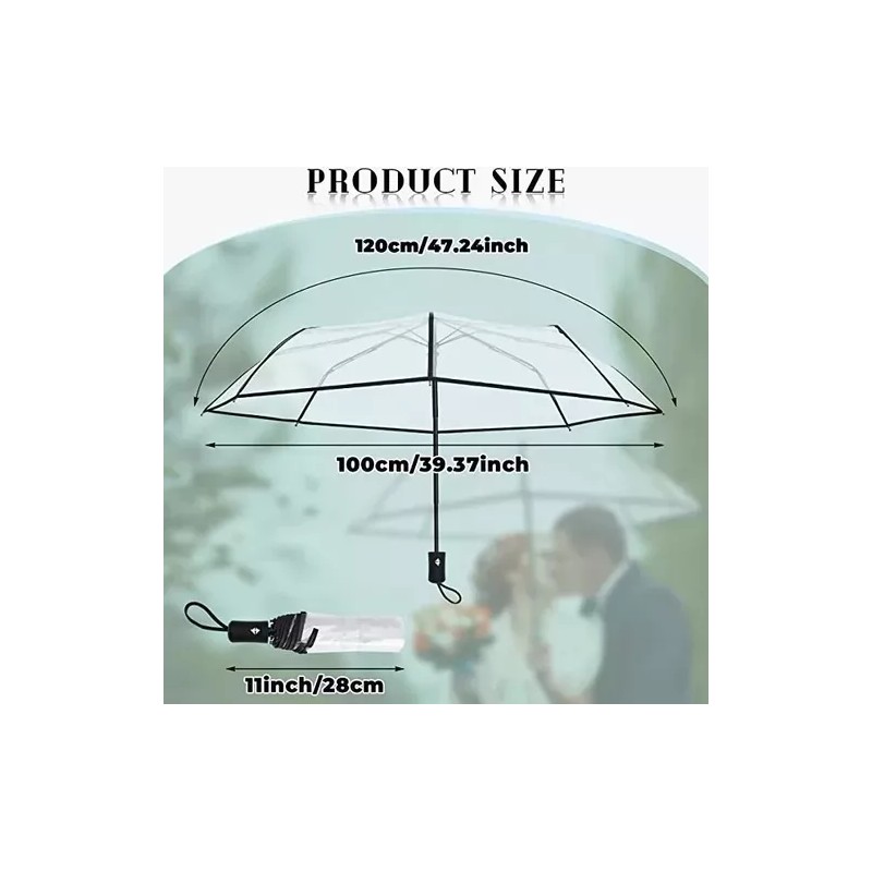 Adopta papel aceitado de alta calidad, acero y material plástico, que es muy fuerte y duradero. Plegable y portátil de llevar, adecuado para viajes, negocios y uso diario. El paraguas transparente de días lluviosos te mantiene en un campo de visión más amplio y más seguro. Fácil de ver el entorno, e incluso si tira del paraguas hacia adelante, es muy posible garantizar la vista.