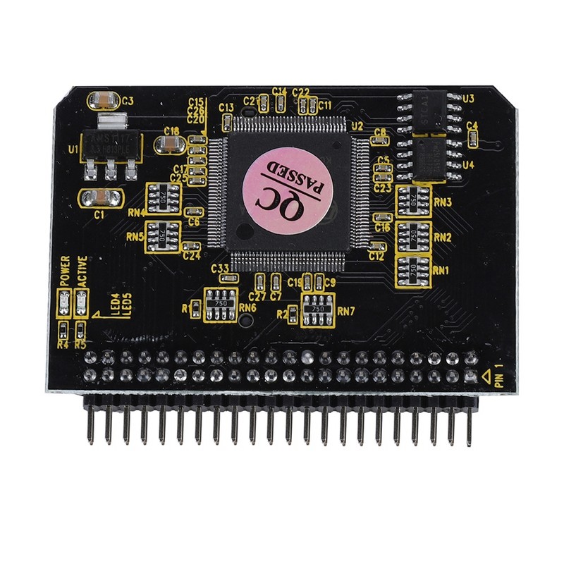 1、Compliance with standards: SD specification Ver2.0, IDE / ATA-33 specification 2、Standard IDE interface: true-IDE mode, and supports DMA-33 transmission mode 3、The IDE interface is a 44-pin/2.0mm male connector 4、There are two main control chips on this board, and there is an SD card socket on the bac 5、Advantages: small footprint, compact design and simple operation