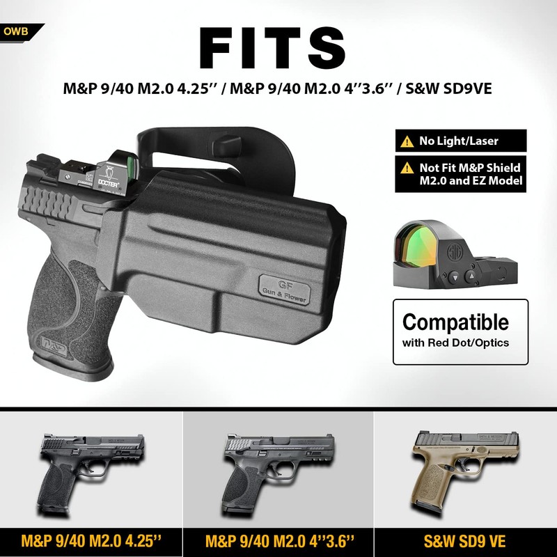 SD9 VE Holster, OWB Holster for S&W SD9 VE, SD40 VE, Smith & Wesson M&P 9MM/ .40 M2.0 Full Size 4.25拻 and M2.0 Compact 4拻 3.6拻, Red Dot/Optics, 360 Degrees Adjustable Cant, Right Hand