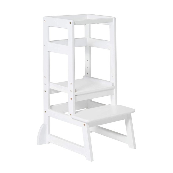 SDADI LT05W Mother's Helper Adjustable Height Kitchen Step Stool, Children Kids Toddlers Counter Level Learning Stool for Kitchen and Bathroom, White