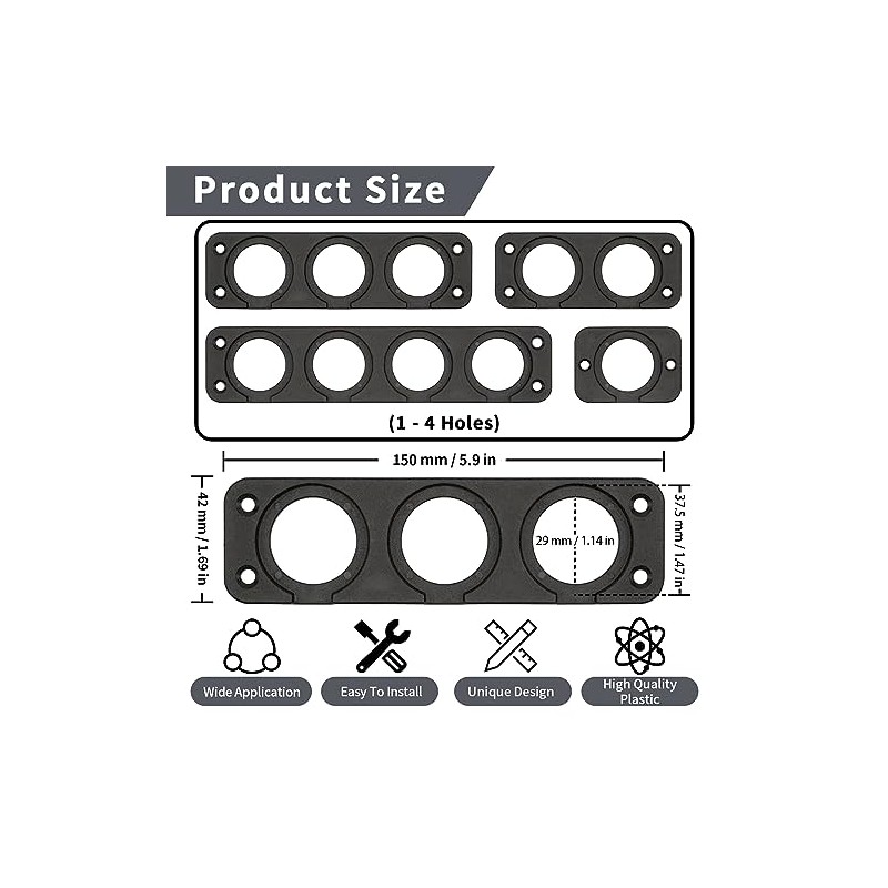 - Easy to Install:Can choose your favorite USB charger socket fits or 12V cigarette lighter and Rocker switch panel matching.Panel housing with 4 Stainless steel screws,simple and quick installation,Just tighten the screws!