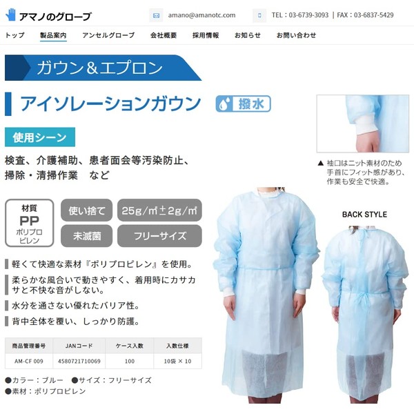 【SDGsに取り組む企業】信頼のアマノ 袖付きガウン 10枚(通気性抜群)アイソレーションガウン 不織布製 不織布ガウン ブルー フリーサイズ 袖ゴム ポリプロピレン 防護服 使い捨て PP 実績豊富 民生用 業務用