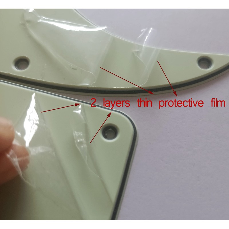 - There are 2 layers thin protective film on the front surface of the pickguard, peel off after installation. PURE aluminum foil shield on the backside, better shielding property and anti-interference.