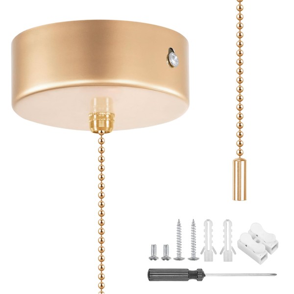 - What you get: Our gold light switch for the pull switch contains a round cylinder switch, a pull cord and a new cable tie/handle for easy installation. There is also a set of mounting tools (Phillips screwdriver) and accessories (two long screws, two pins and two screws).