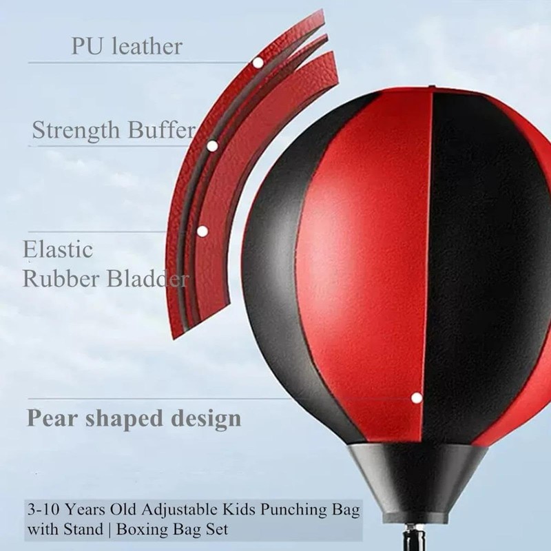 - COMPLETE B-O-X-I-N-G SET WITH PUNCHING BALL AND GLOVES: This b-o-x-i-n-g set includes everything a young athlete needs to start practicing: a punching ball, a sturdy stand, and comfortable gloves designed for kids. The punching ball is perfect for helping children improve their punching techniques and coordination, while the gloves provide comfort and protection during their training. The complete set ensures that kids have all they need to have fun while learning the basics of b-o-x-i-n-g.