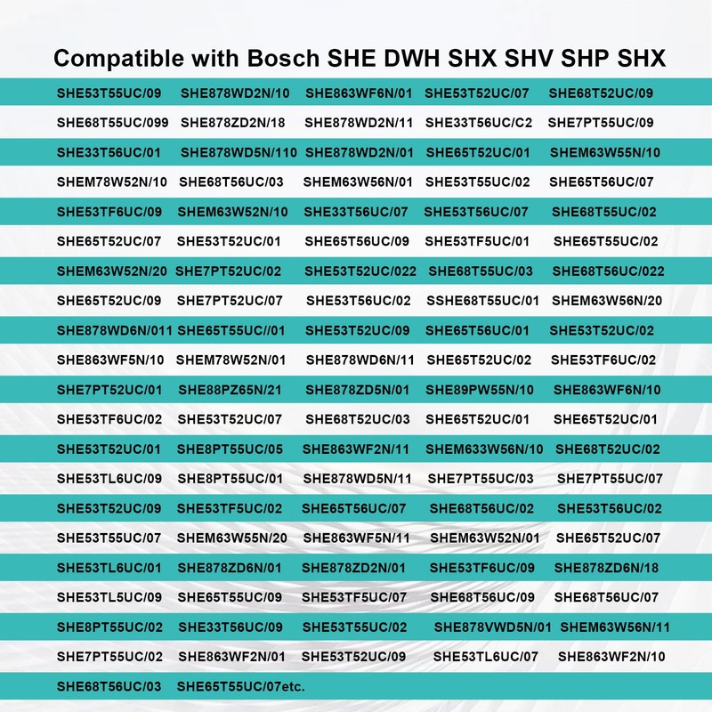 - 【Fit for】: Fit for Bosch SHE DWH SHX SHV SHP SHX SHE53T55UC/09, SHEM63W52N/20, SHE65T52UC/09, SHE863WF5N/10, SHE53T52UC/01, SHE53T55UC/07, SHE8PT55UC/02, SHEM63W56N/13, SHE7PT55UC/01, SHE878WD2N/10, SHE7PT52UC/02, SHE7PT52UC/07, SHEM78W52N/01, SHE8PT55UC/05, SHEM63W55N/20, SHE33T56UC/09, SHE878WD6N/10, SHE68T55UC/03, SHE863WF6N/01, SHE53T52UC/02, SHE53T56UC/02, SHE878WD6N/11