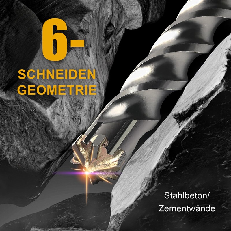 • The drill cutting of the 6-cutter design for fast drilling progress and provide protection against tilting in reinforced concrete.