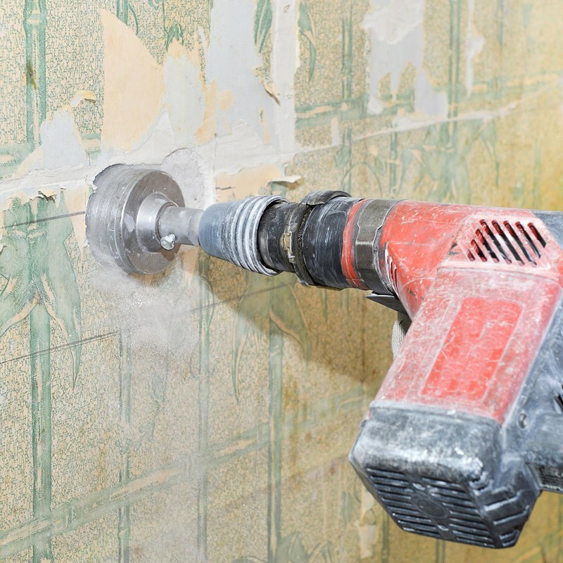 35mm to 45mm drill bits are used for drilling water pipes and heating pipes, 55mm to 80mm drill bits are used for air conditioner pipes and 110mm for 4 inch wall fans