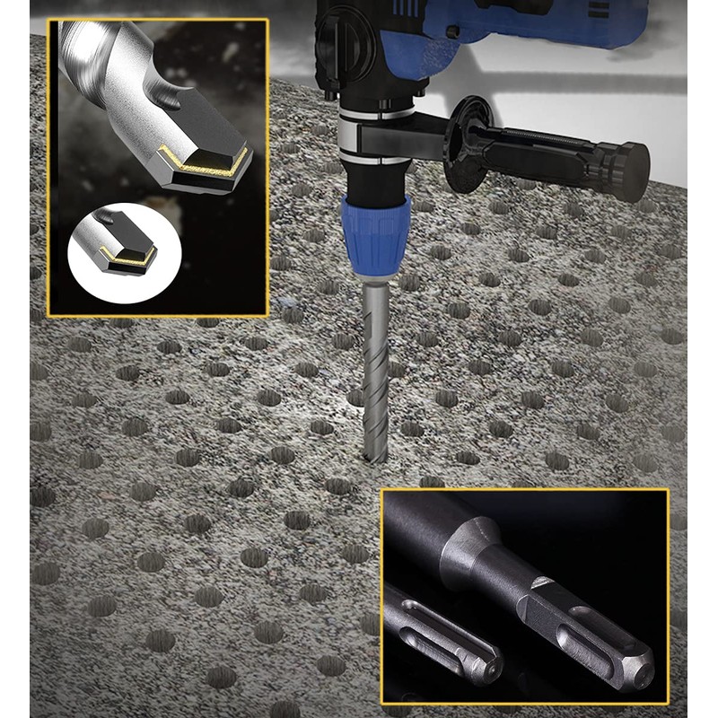 - SDS Drill Bit Shank Material: Premium 40CR Steel with Heat Treatment Improves Core Strength for Maximum Durability and Longer Cutting Life