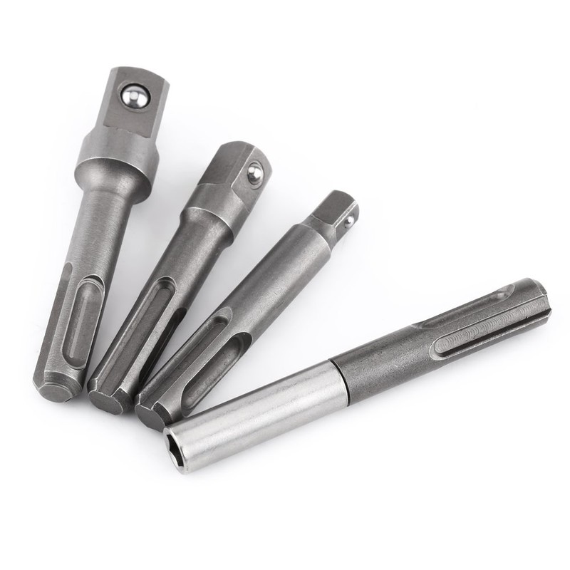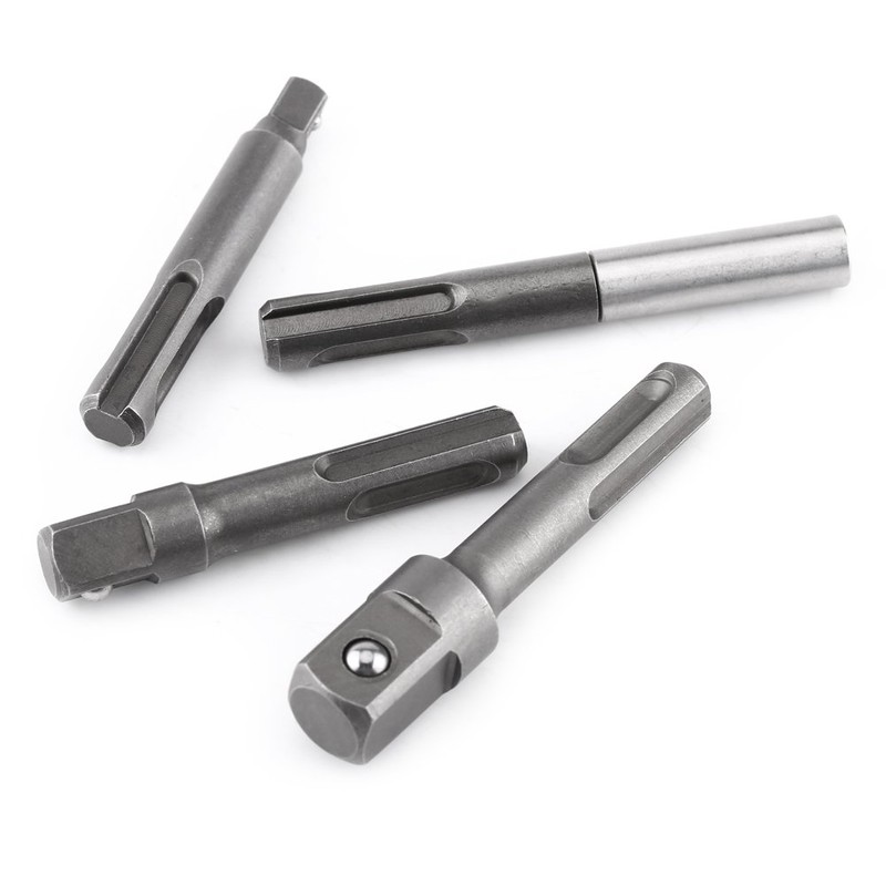 - There are one hex socket and three Squares adapters in different sizes and you can use the proper one for various needs. Universal SDS plus shank would fit most electric screwdrivers, drills and chuck.